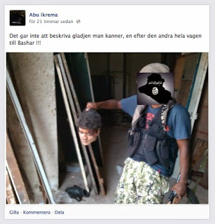 Per Gudmundson on his blog has this picture uploaded by a barbarian, “Abu Ikrema”, from Stockholm who writes ” It is impossible to describe the joy one feels….”