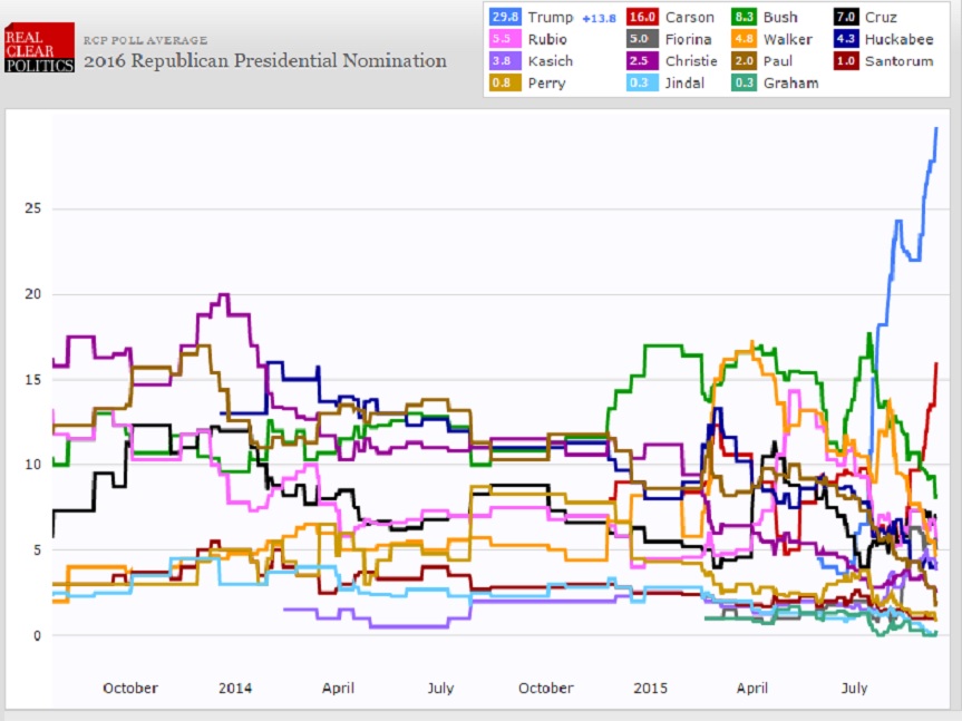 Probably unthinkable, but from the outside looking in, the numbers suggest to me that a Trump + Carson ticket could overwhelm all the other Republican candidates. One Republican candidate has left the race (Rick Perry). Huckabee and Santorum will probably be the next to leave. And the Trump bubble is not imploding as all expected. In fact, the polls suggest that Trump is still gaining strength.