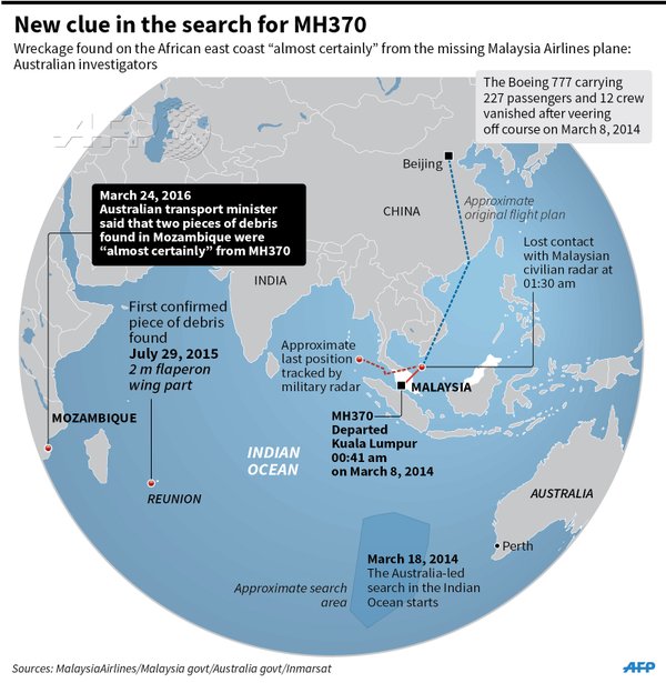 From somewhere in the depths of the Indian Ocean two pieces of debris have found their way to the shores of Reunion Island and Mozambique. It is thought highly likely that they are from MH370.