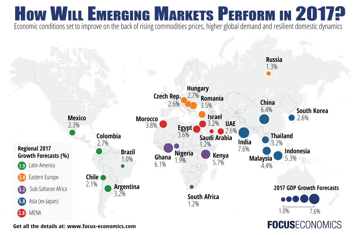 Focus Economics has published its emerging markets prediction for 2017.