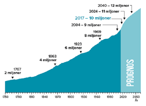 In 1969, 8 million people lived in Sweden. It took 35 years before the population passed 9 million in 2004. But only 13 years later, sometime in the first quarter of 2017, we will be more than 10 million inhabitants. Rapid growth will continue in the coming decades and we can be 12 million already by 2040.