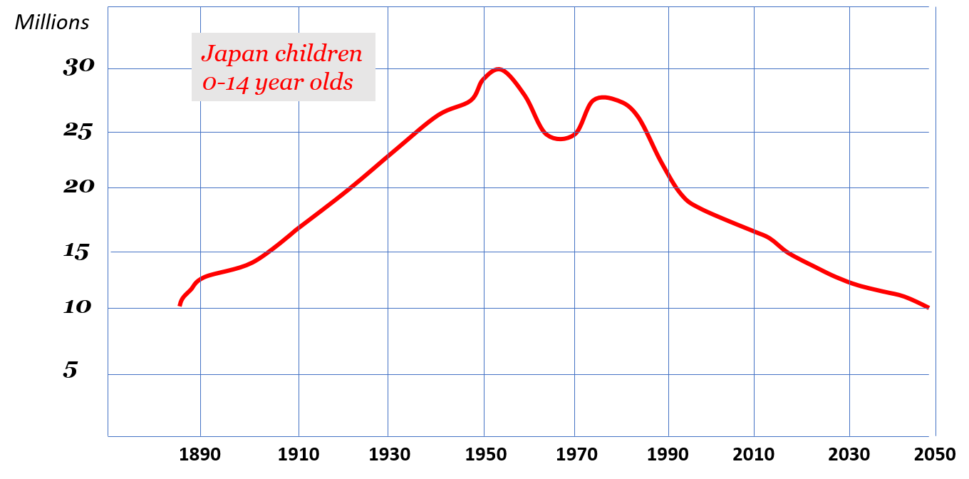 The challenges of an aging population are receiving much attention as the ratio of working population to supported population declines. But what receives less attention is the upheaval being caused in Japan by the sharp decline in the number of children.