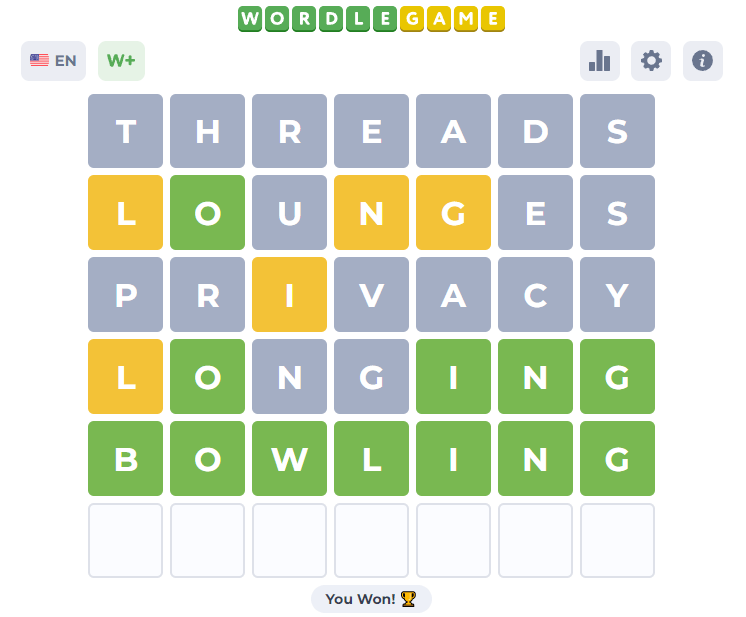 I am very new to Wordle and only started playing last week. The greatest challenges I found with Wordle 5 and 6 were the use of American spellings and the seemingly arbitrary conjoining of two words to create “words” which I would not consider to be single words.