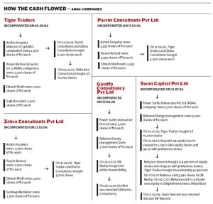 The potential connection between the Indian 2G scam and the menagerie of companies in the Anil Ambani group (Swan, Tiger, Parrot, Zebra, Penguin and Giraffe.) surfaced in early 2011. But now it is reaching Court and Anil Ambani deposed yesterday. His wife Tina is due to depose today. His ADAG Group has lost much of its former gloss and he may not command the same level of political support and protection that he could a few years ago. He no longer has the unquestioning shareholder admiration his father once had (and which to a large extent his brother still has)