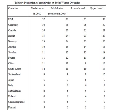 W Andreff, Economic development as major determinant of Olympic medal wins: predicting performances of Russian and Chinese teams at Sochi Games, in Int. J. Economic Policy in Emerging Economies, 2013, 6, 314-340.